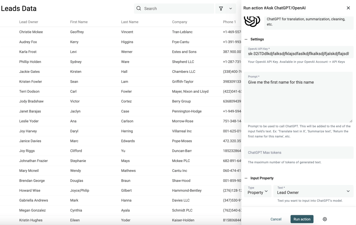 - Map the columns with the first names, last names and domains of your prospects as “Input properties”