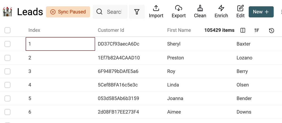 Actions are grouped in 4 menus: Import, Export, Clean, Enrich, and Edit. Read our Datablist for Lead Management post to learn more on that.