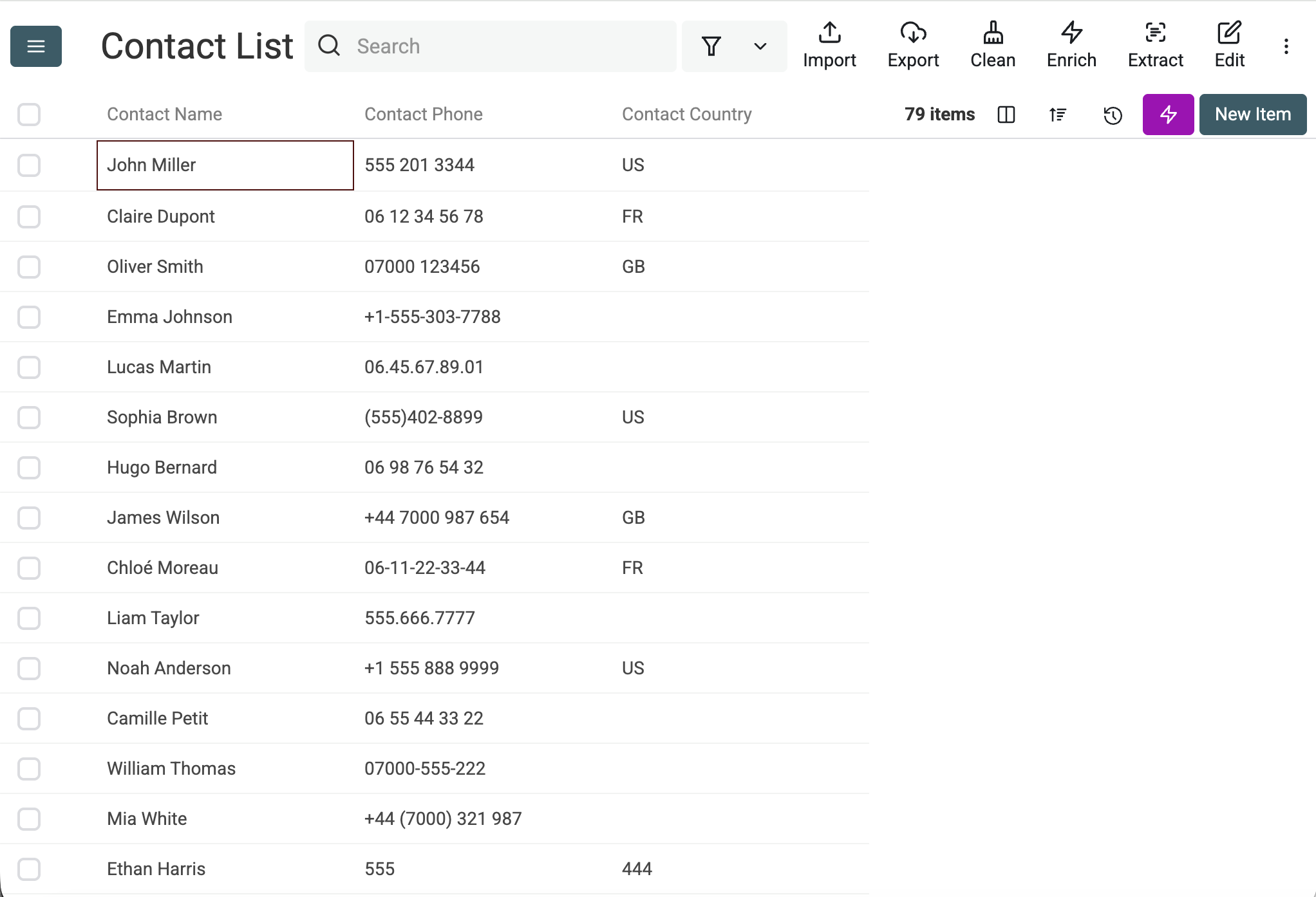 - Local to International: Turn local numbers (e.g., 06 12 34 56 78) into valid international numbers by specifying a target country.