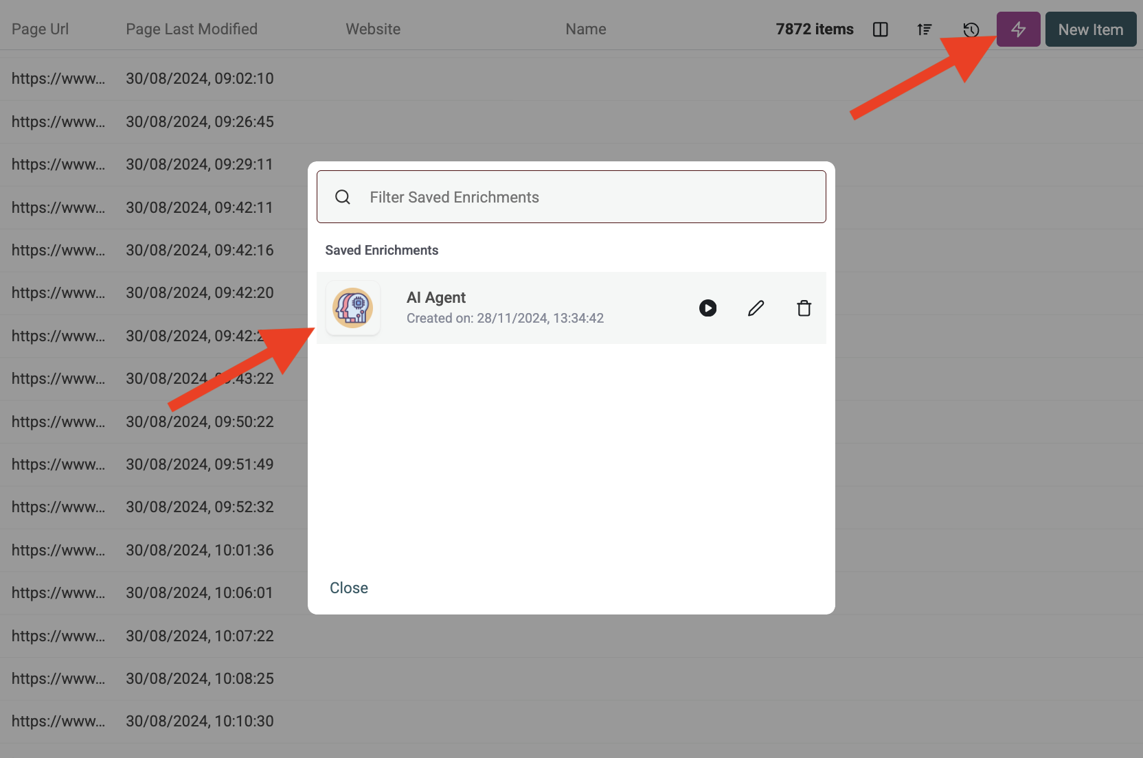 - Run Import: Haga clic en Run import now. El AI Agent comenzará a hacer scraping del sitio web según el prompt y rellenará su colección.