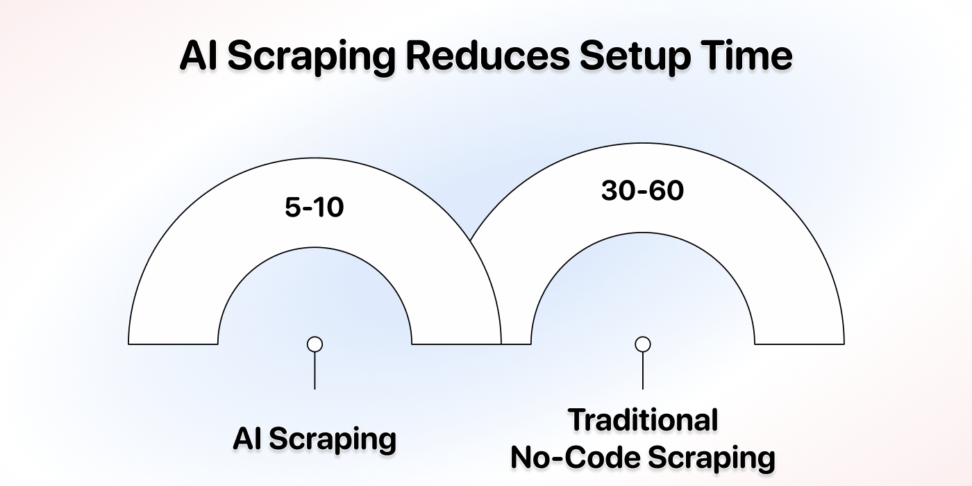 Lo que antes tomaba horas con herramientas de click-and-point, ahora toma minutos con scraping con IA. Esta ventaja en velocidad es real y medible.