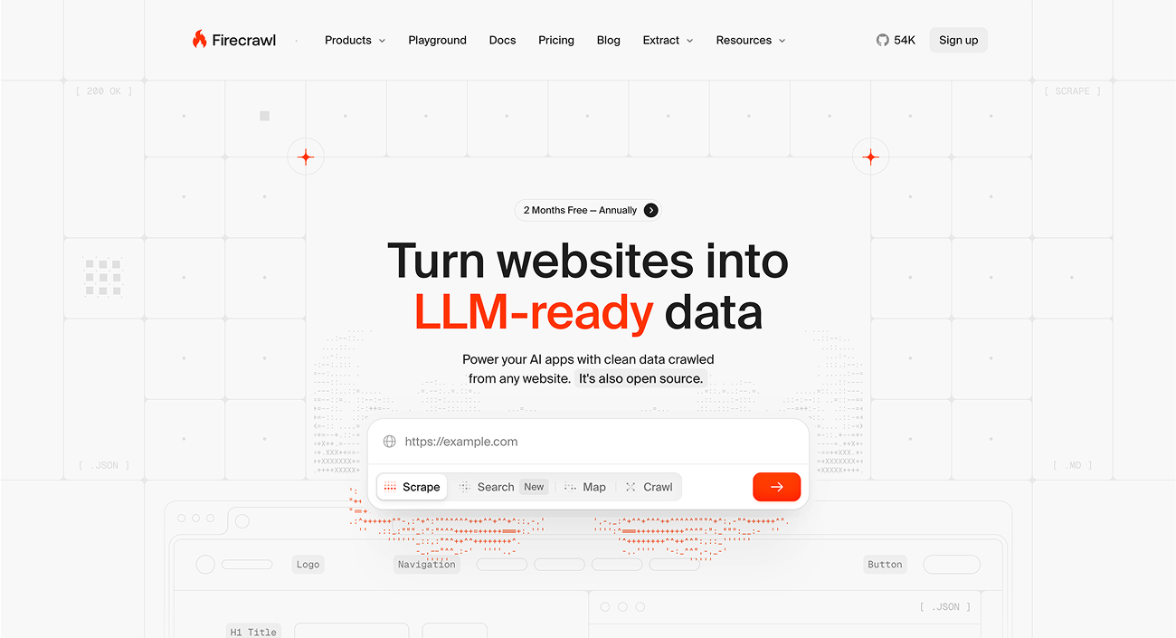 Firecrawl es una web data API open-source pensada específicamente para desarrolladores que construyen aplicaciones de IA. No pretende ser una herramienta de click-and-point; está hecha para uso programático.