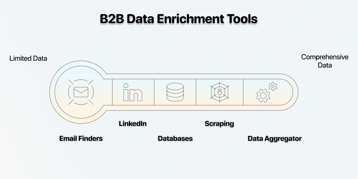 Les sources sont innombrables, mais aucune n’a tout. Le meilleur plan consiste souvent à combiner plusieurs outils d’enrichissement B2B.