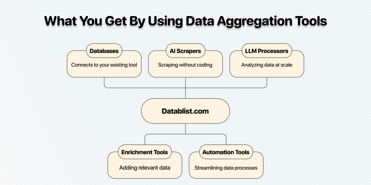 Les outils d’agrégation de données (comme Datablist.com) sont, à mon sens, les meilleurs, car ils vous permettent d’utiliser :