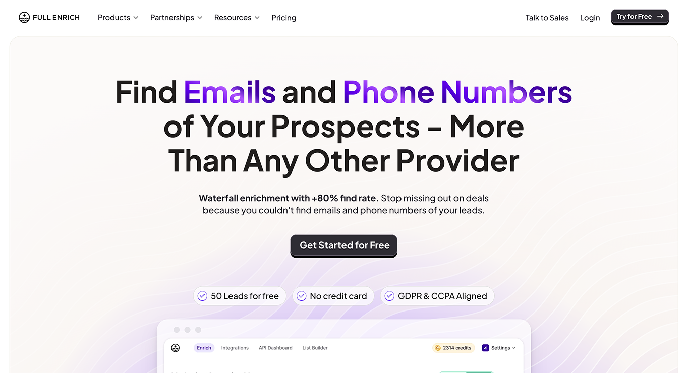 - Focalisé sur la qualité du contact : bounce rate < 1%, vérification des catch-all, et numéros mobile-first