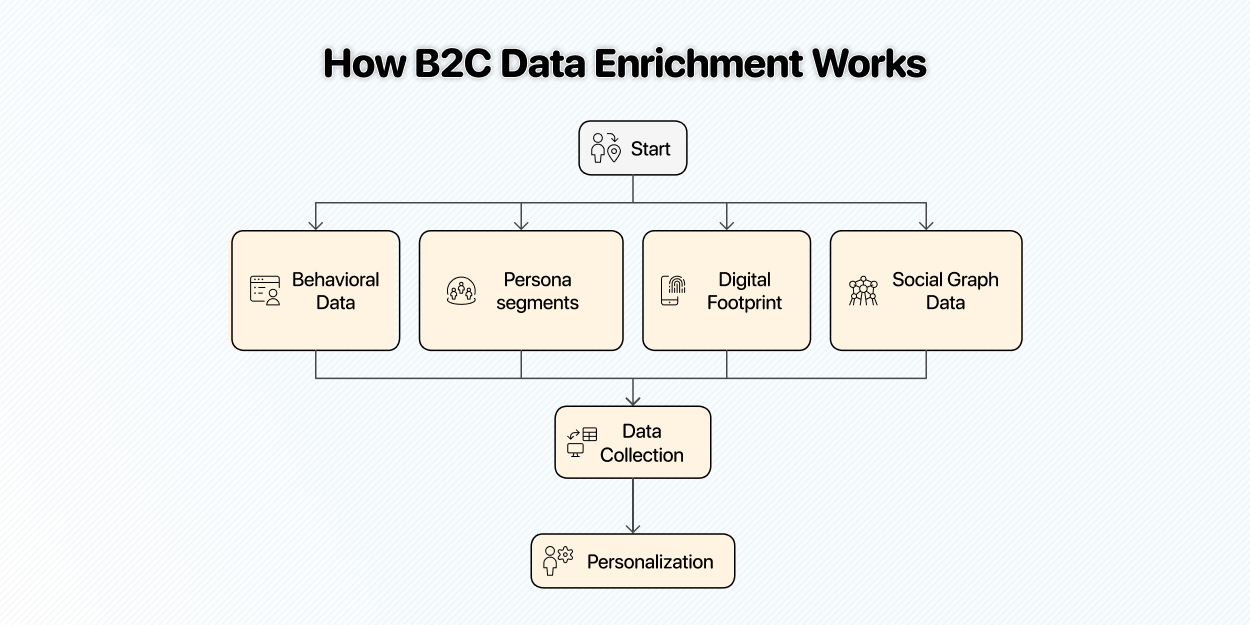 L’enrichissement de données se produit presque à chaque clic sur internet et il est difficile d’y échapper. Pour bien comprendre l’enrichissement B2B, c’est utile de regarder d’abord le B2C : les principes diffèrent, et la comparaison aide à clarifier.