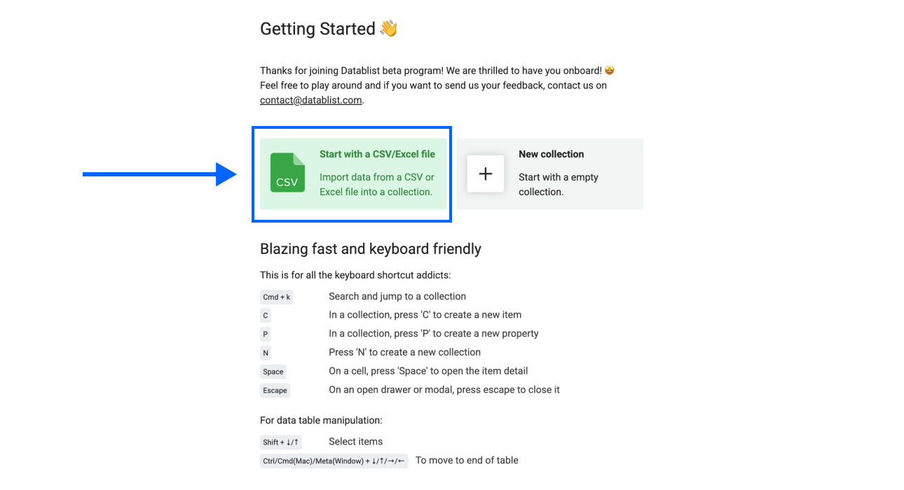 Étape 1 : Créez un compte Datablist & Upload vos données