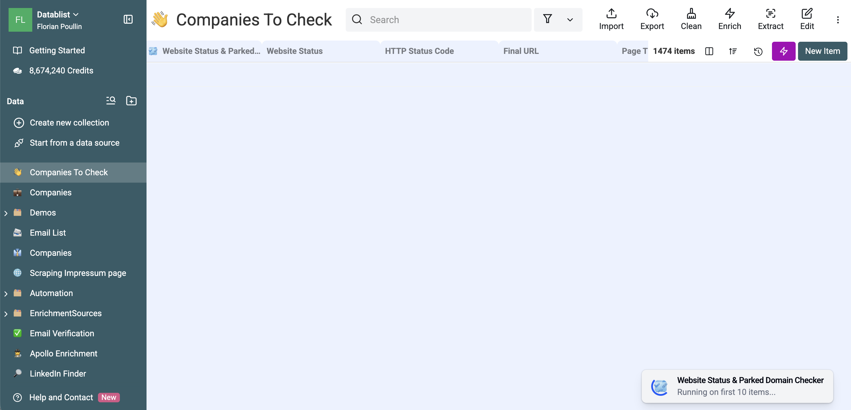 If a row returns "Parked", the domain is officially dead for lead generation purposes. The business is no longer active at that address. Delete these leads or move them to an "Inactive" archive.
