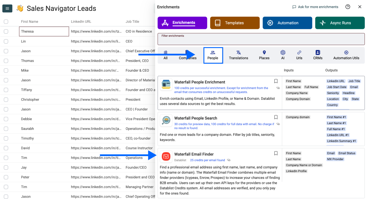 Most email finder tools require you to provide a first name, last name, and company domain. But what if you only have LinkedIn profile URLs? That's where Datablist's Waterfall Email Finder comes in.