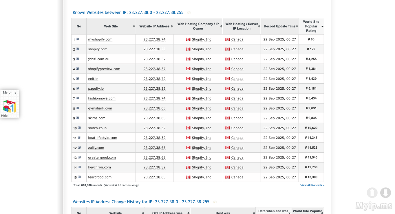 3. View the hosted domains: After searching for an IP, MyIP.ms will show you a list of websites hosted on that particular IP address.