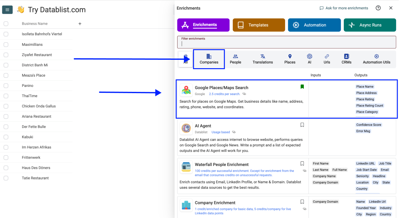 This article shows how to find businesses on Google Maps in reverse using Datablist's Google Places Search enrichment.