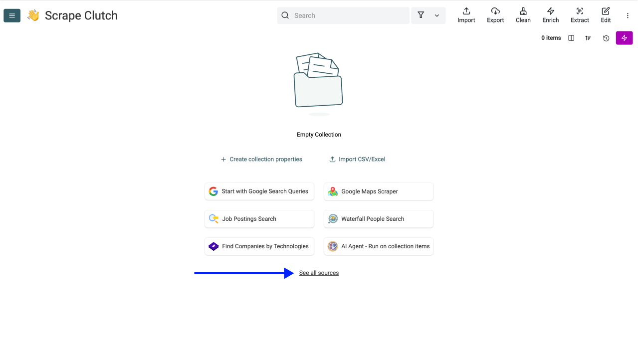 Datablist.com supports up to 100,000 rows per collection, and the AI Scraping Agent can scrape up to 5,000 pages in a single run (depending on LLM model you choose). For most Clutch scraping workflows, this is more than enough to capture every agency in your target category and location.