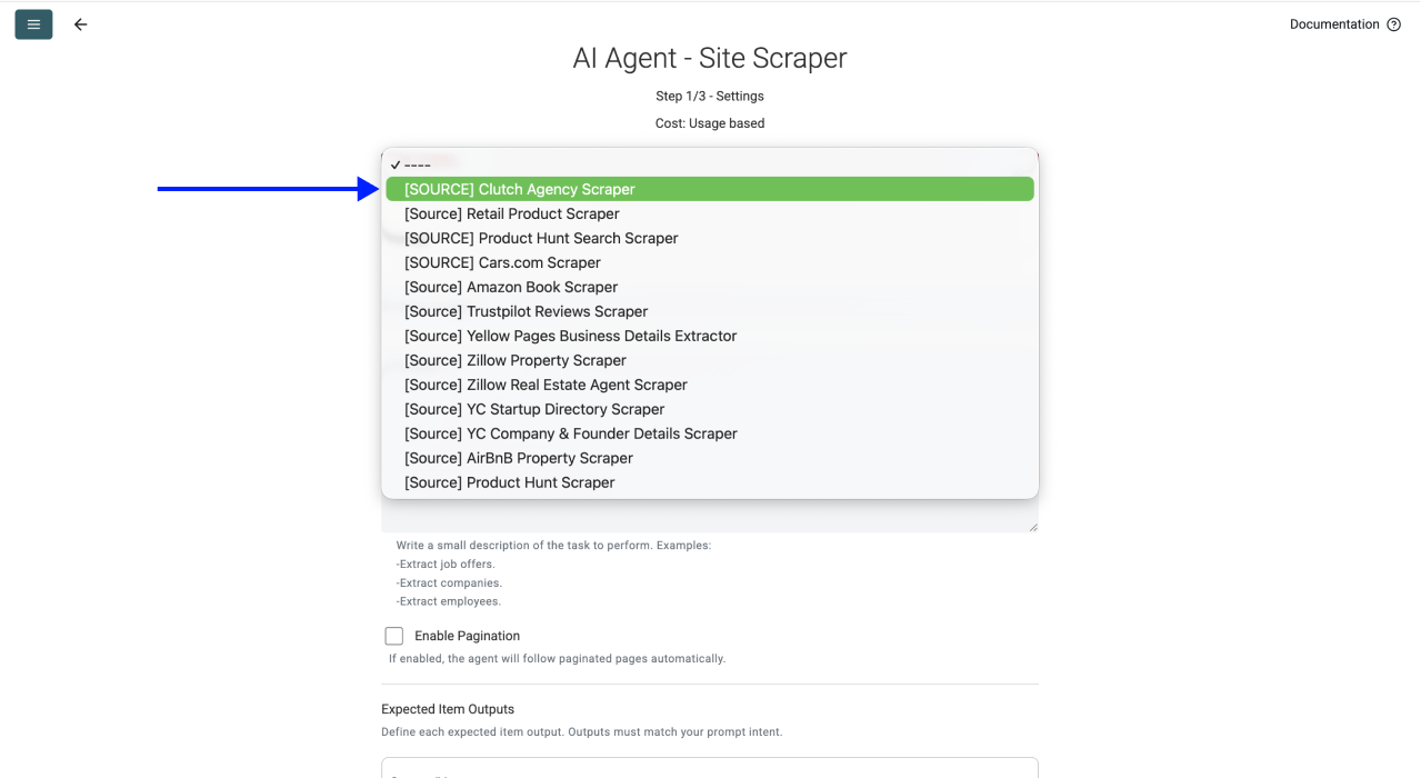Step 2: Navigate To The AI Scraping Agent