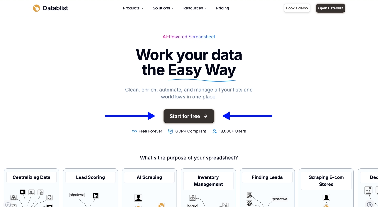 Datablist.com is a platform for building lead generation workflows that allows 26.000 users to find, enrich, and clean data using over 60 different tools from AI Agents to Email Finders, AI processors, Technology enrichments, and more.