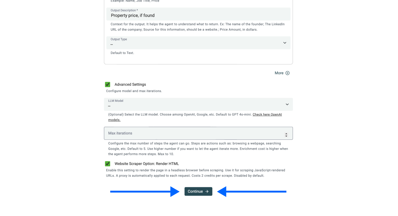 - Once you've done the steps above, click on Continue to outputs configuration