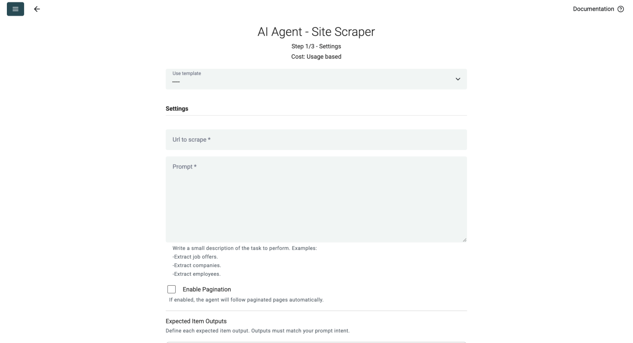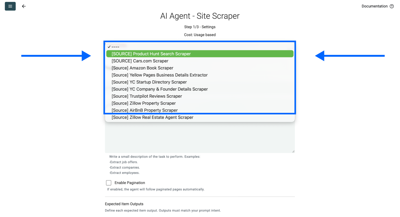 - Scroll down and select AI Agent - Site Scraper