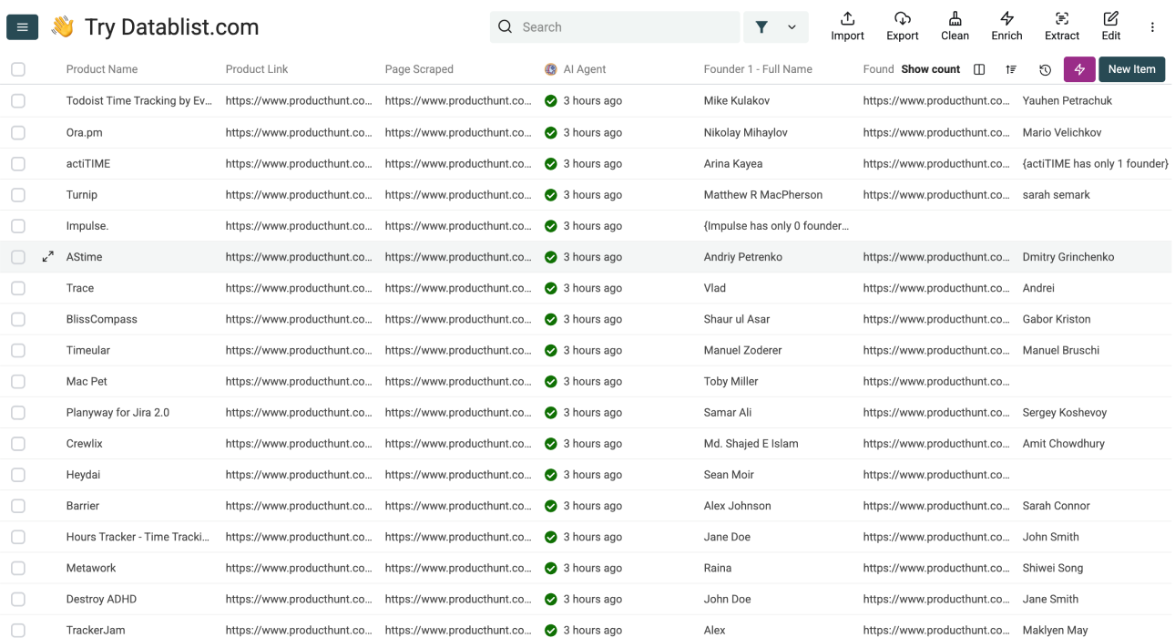 Once you have your list of products and founders from Product Hunt, you can immediately use other Datablist tools, including: