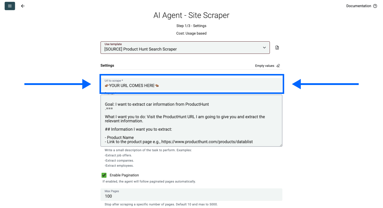 - Select the number of pages you want to scrape