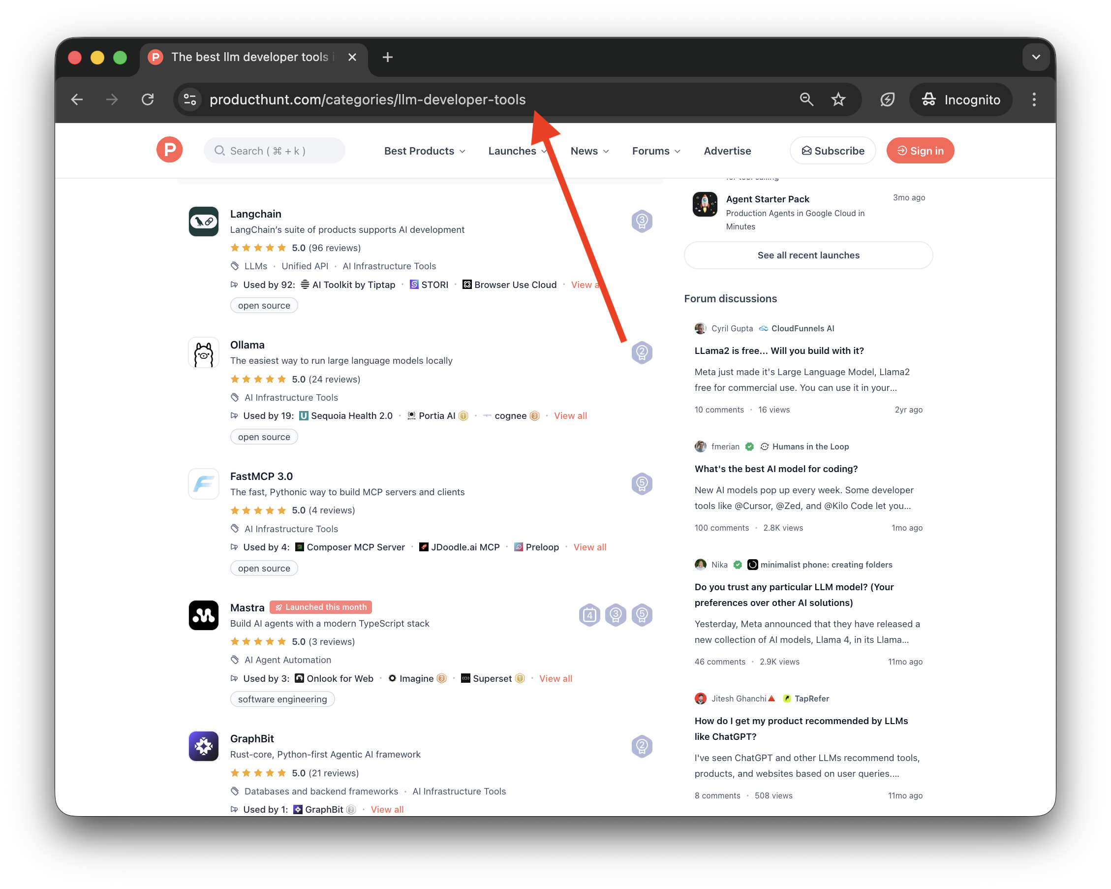 For example, for the best llm developer tools on ProductHunt, the url is: