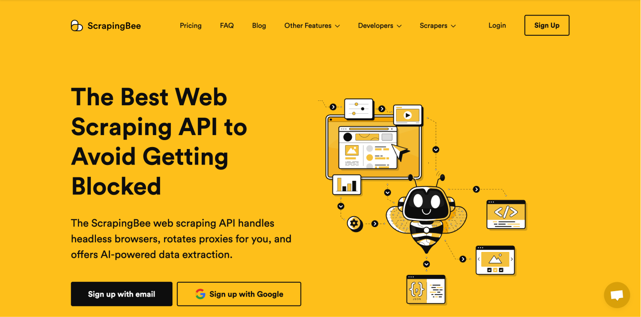 Though ScrapingBee markets itself as a solution for no-code users[1], but it operates primarily through an API (Application Programming Interface). This means: