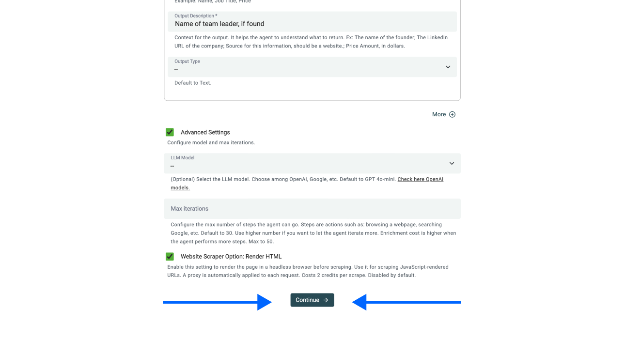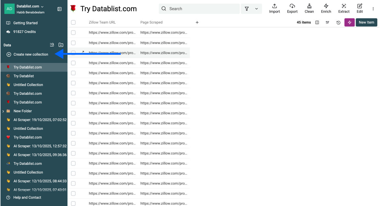 Unlike other "templates" that still require a lot of configuration, the only thing you have to do with Datablist's AI Agent is select the Zillow template, paste your URL, and start the process.