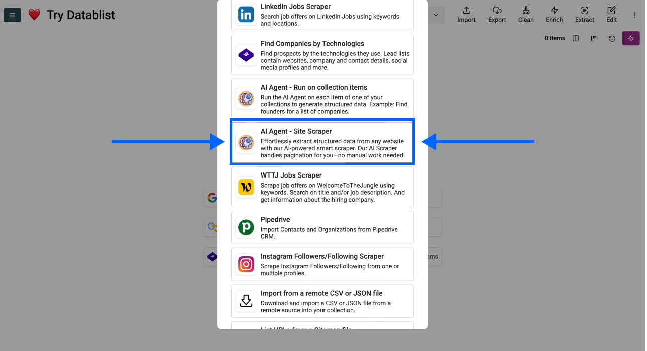 Datablist is a platform for automating lead generation workflows, which offers a suite of over 60 tools, including AI Agents, Waterfall Enrichment to find emails and phone numbers, data cleaning tools for deduplication, and more.