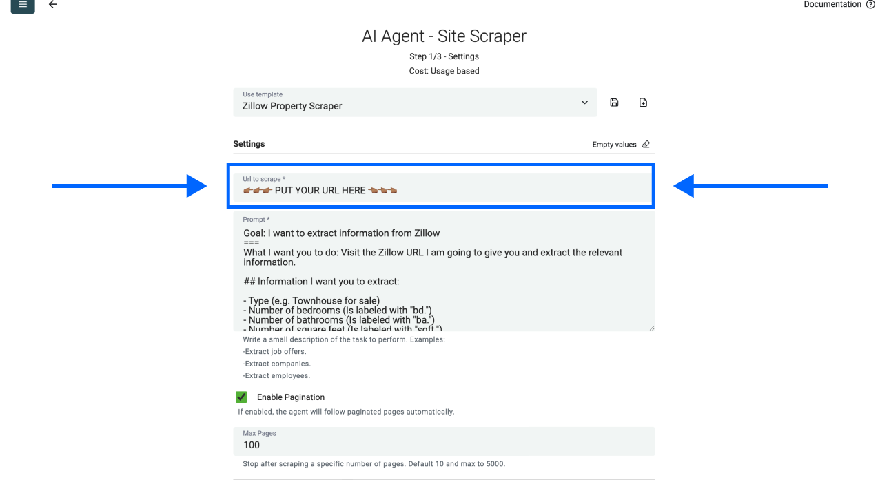 The scraping templates are ready to use the moment you paste in a Zillow URL. There is no complex configuration. Even if you want to modify a template to get different data, you can do it using plain English. Just tell the AI what you want, and it handles the rest.