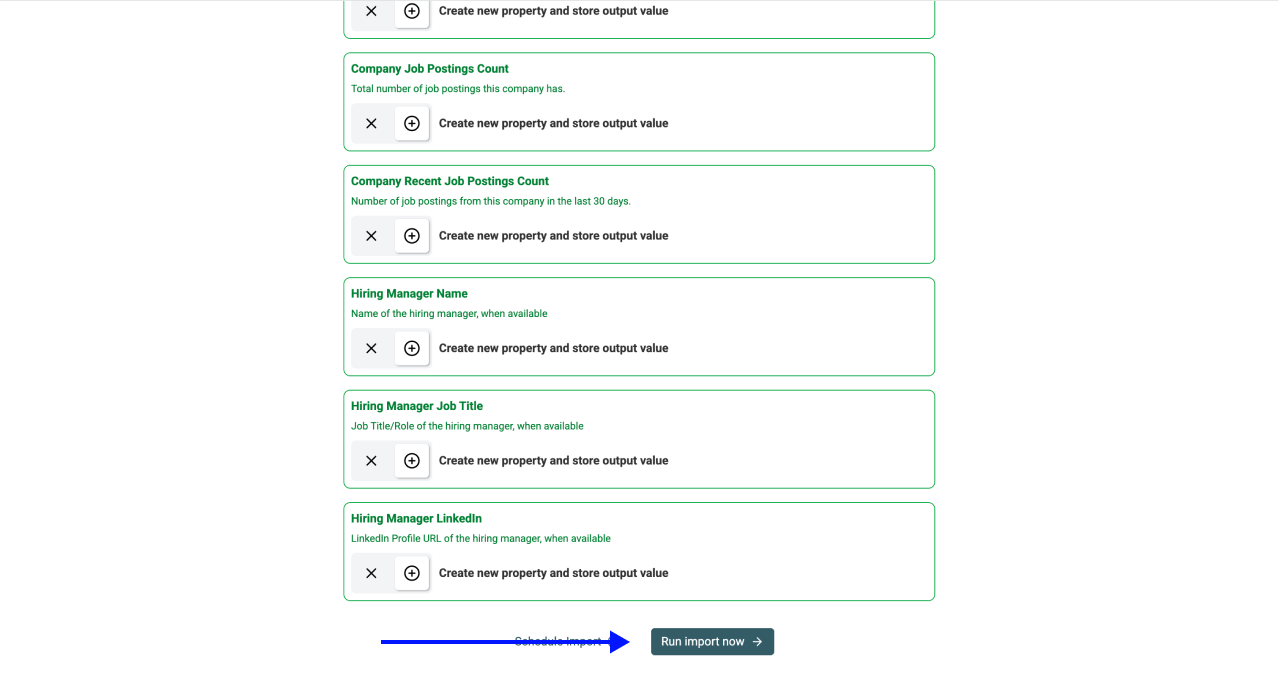 Scroll down and click Run Import Now to start scraping tech jobs in Boston.