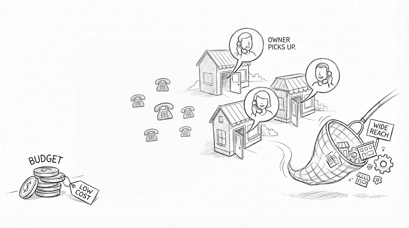 That said, if you target small businesses where the owner often picks up the main line, this method can still deliver solid results. It's also a great option when you have more time than budget and want to cast a wide net.