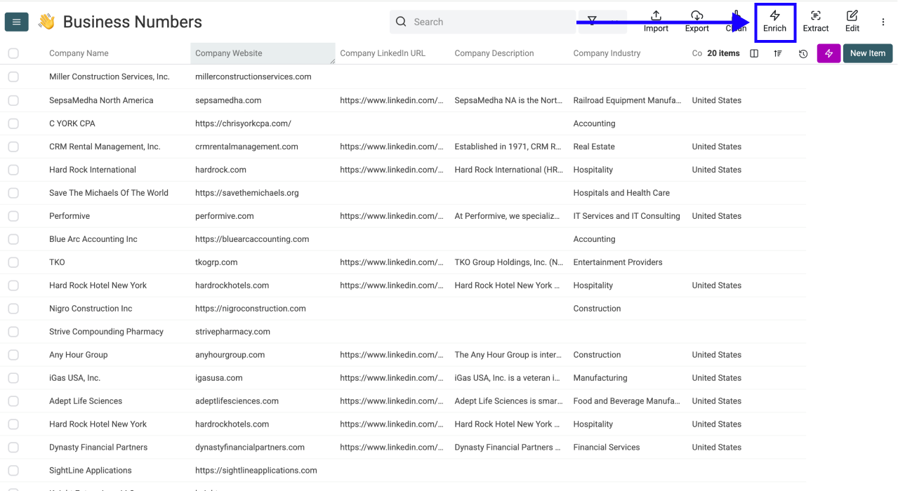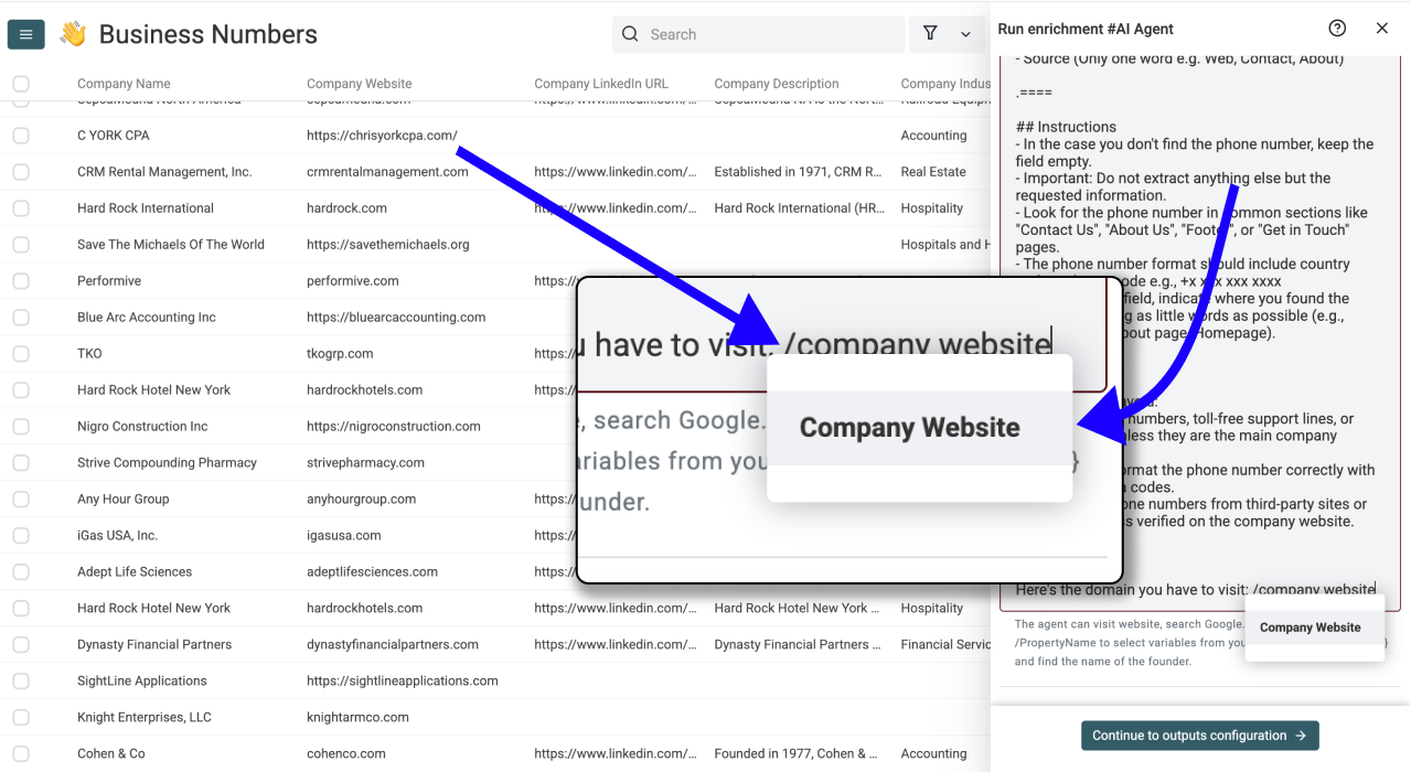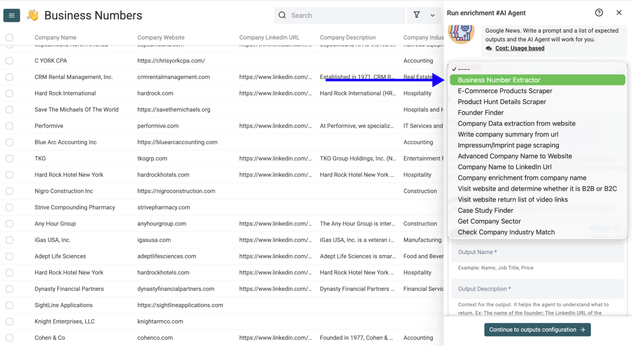 Alternatively, if you have website URLs, you can skip LinkedIn entirely and use the AI Agent to extract business phone numbers directly from company websites.