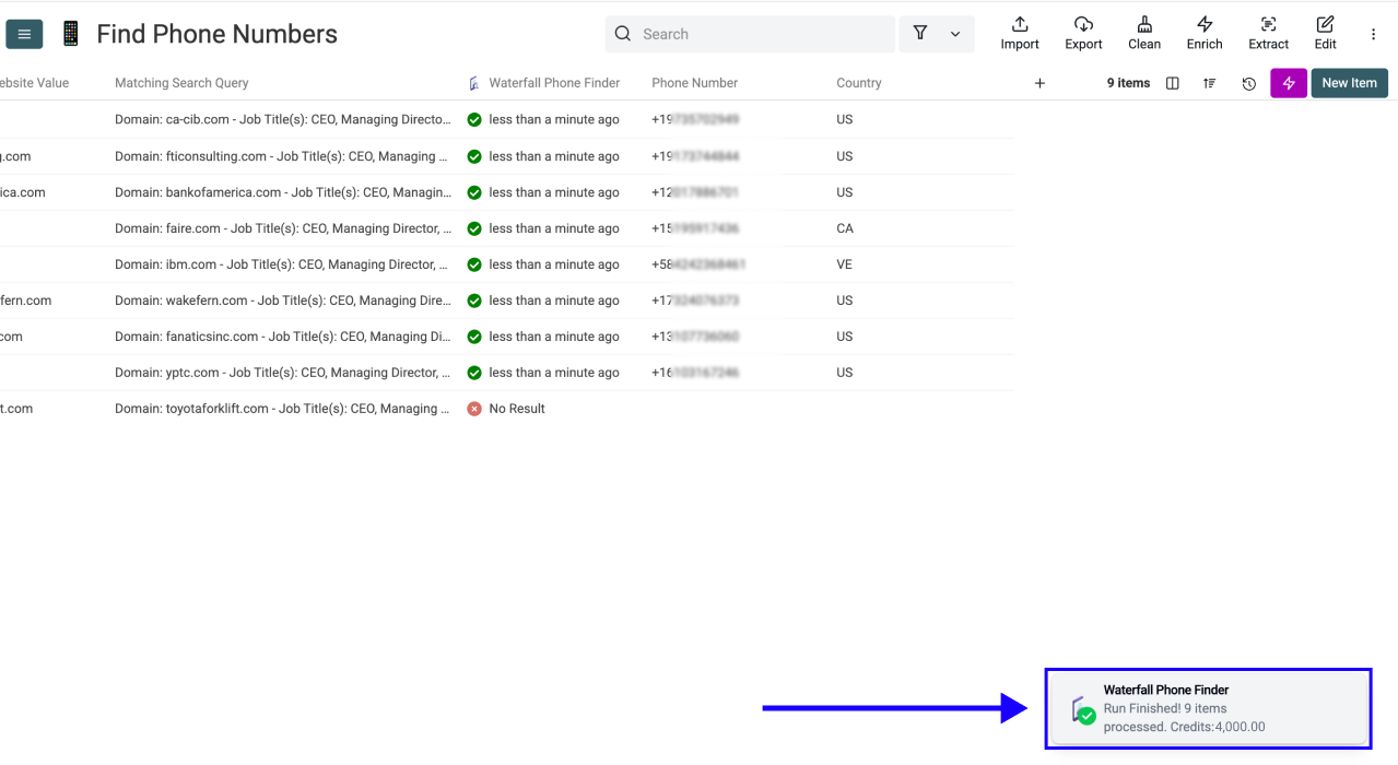 This guide covers two methods to find phone numbers. We recommend starting with the Waterfall Phone Finder since it returns only verified mobile phone numbers.